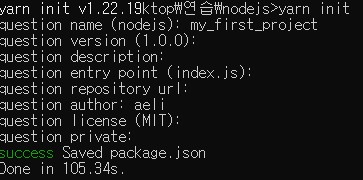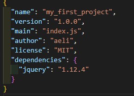 위 내용을 모두 마치면 위 내용을 포함한 package.json이 생성됨